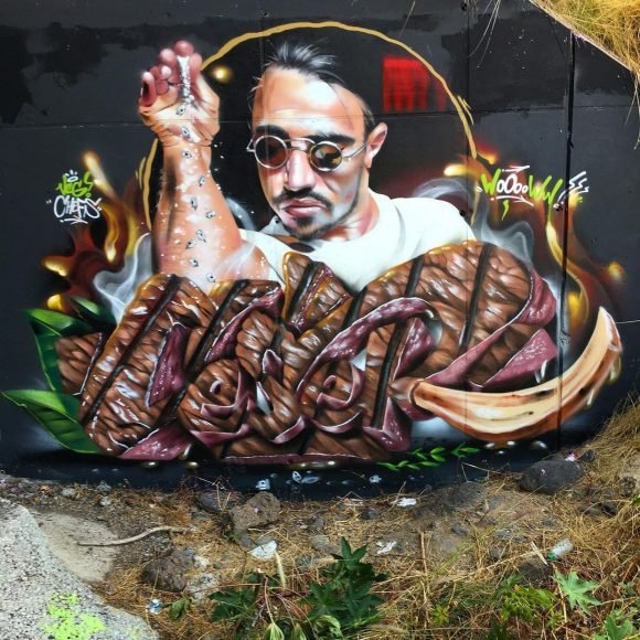 Salt Bae gets the graffiti treatment too, with the letters of CESERs name formed from seasoned meat