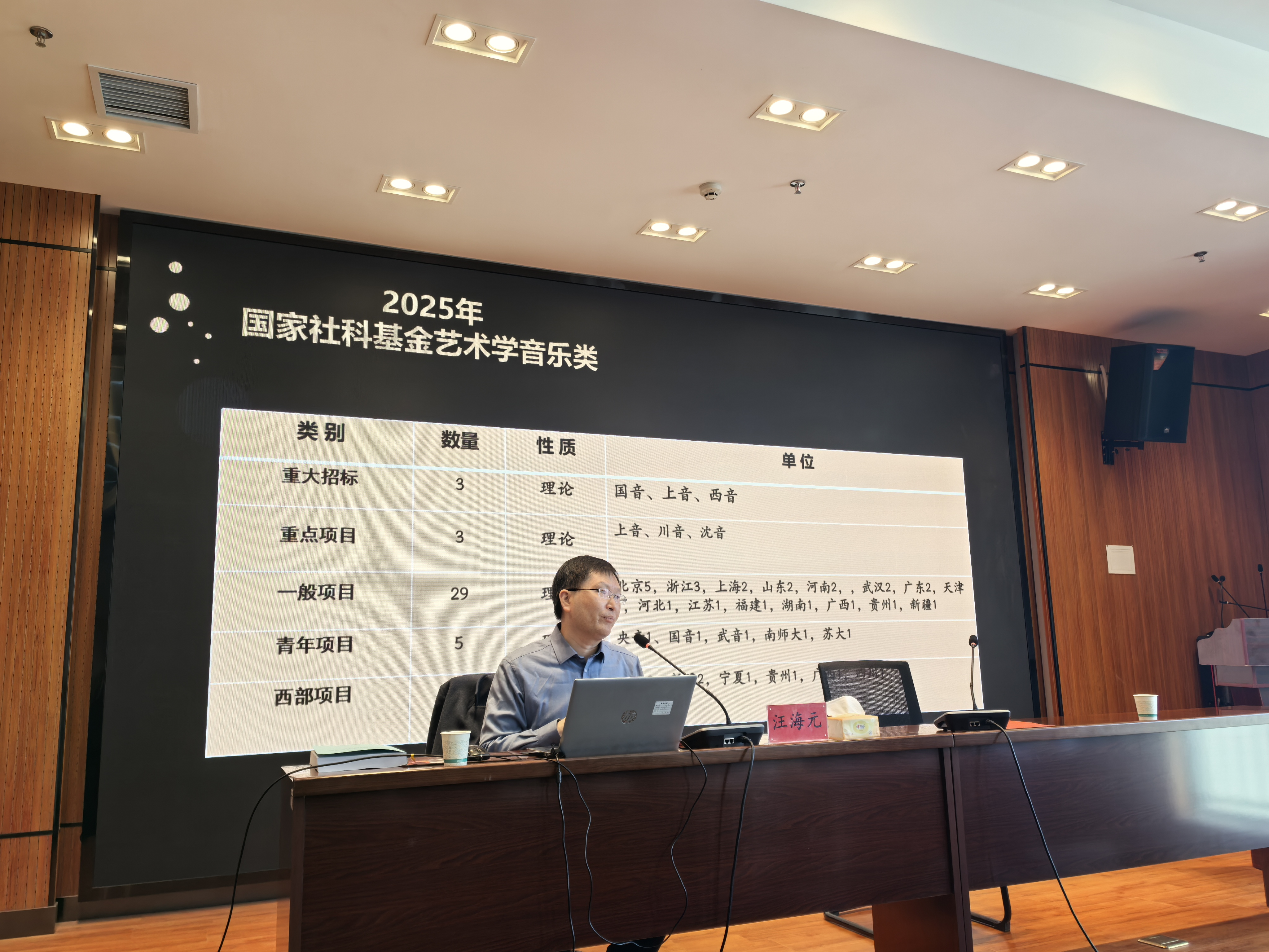 指导会上,汪海元教授以《国家社科基金艺术学项目申报数据分析与策略解析》为题展开专题讲座。作为连续成功申报多项国家级项目的专家,汪教授凭借丰富的实践经验,对近十年国家社科基金艺术学项目的立项数据进行了系统梳理,清晰呈现了项目的热点研究领域与评审趋势,为在场教师搭建起全面了解项目申报整体情况的框架。