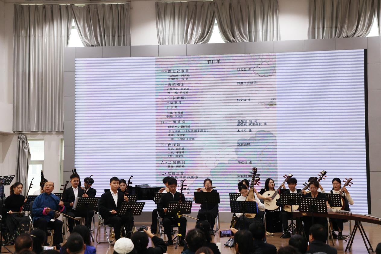 现场演绎环节更是精彩纷呈,田再励教授与助演嘉宾以“讲演结合”的方式,倾情呈现《寒鸦戏水》《夜深沉》等代表性曲目。在体育平台官网“琴园”民族室内乐团的协奏下,整场讲座在欢快的《喜洋洋》合奏中圆满落幕,实现了学术理论与艺术实践的深度融合。