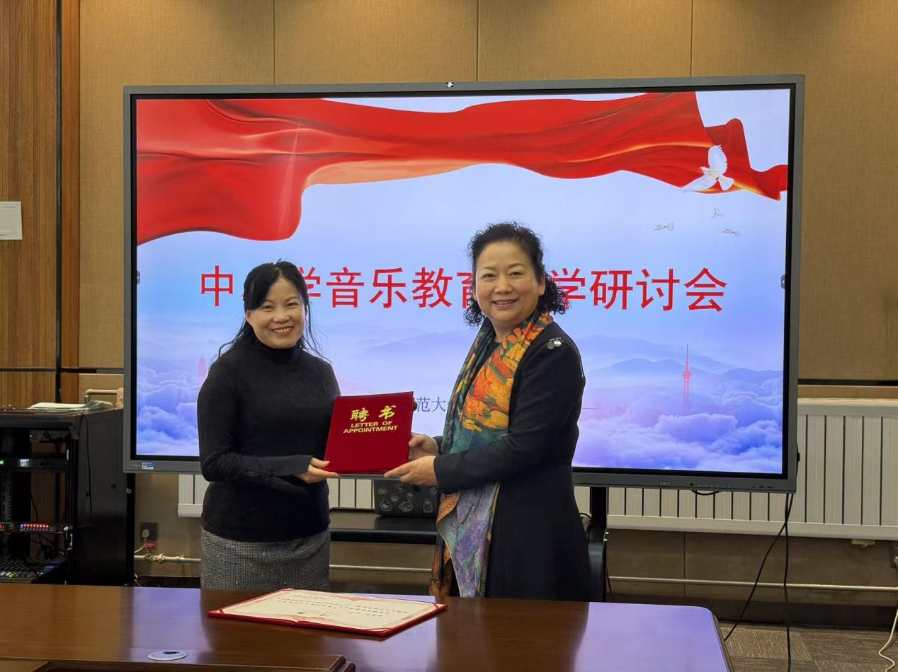 研讨环节后,参会教师踊跃发言,围绕“民族音乐如何融入常规课堂”“AI工具辅助合唱训练的实操技巧”等教学困惑与创新思路展开充分互动交流,现场思维碰撞激烈,氛围热烈活跃。会议期间还举行了聘书授予仪式,旨在凝聚区域音乐教育协作力量,强化教研共同体建设。