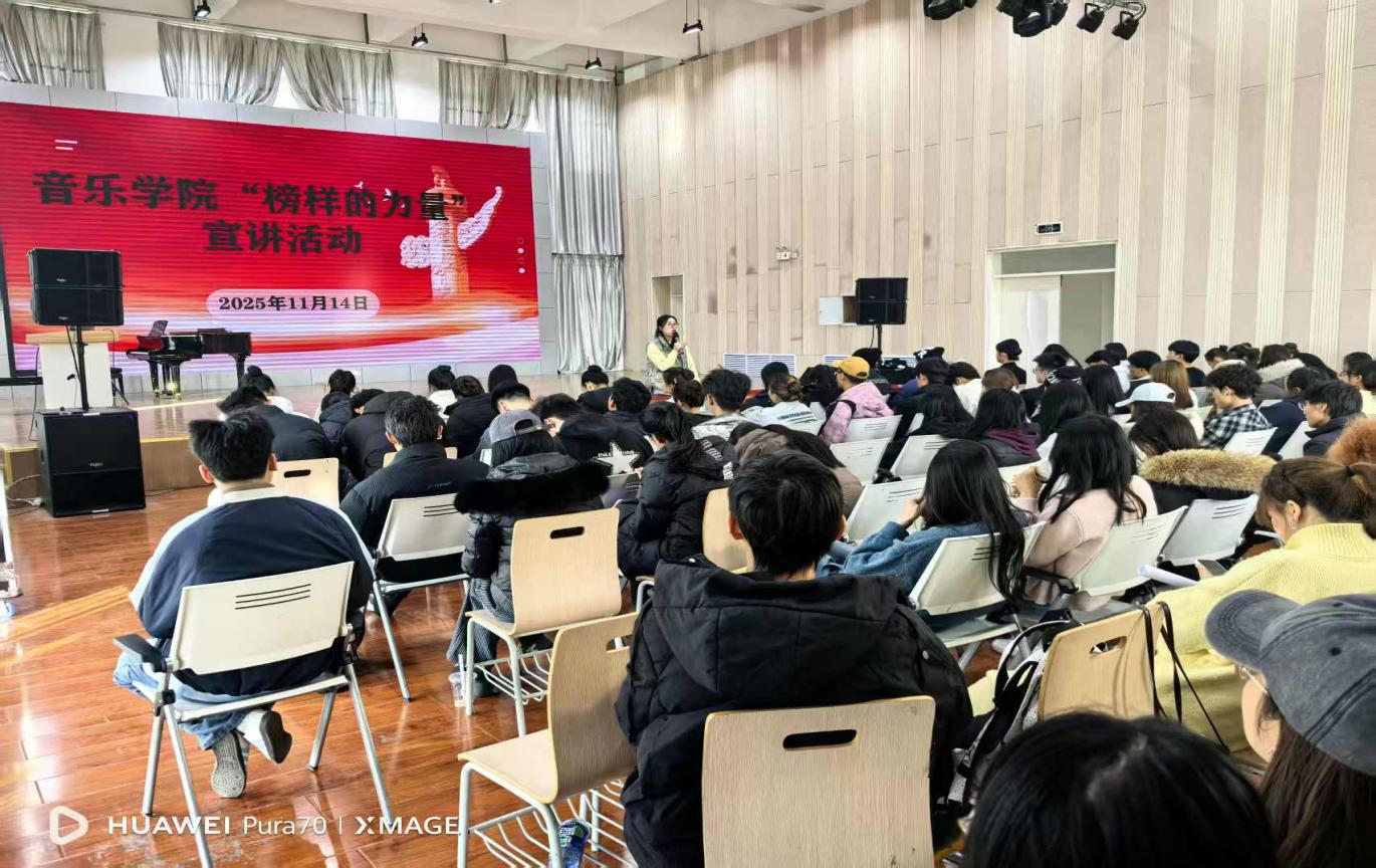 整场宣讲内容充实、情感真挚,既有干货满满的经验分享,也有直抵人心的精神感召,现场氛围热烈而浓厚。宣讲结束后,2025 级新生纷纷表示,将以榜样为标杆,把本次学习所得内化于心、外化于行,在今后的老员工活中树立远大理想、涵养优良品德、练就过硬本领,争做有理想、有修养、有担当、有作为的新时代音乐学子。