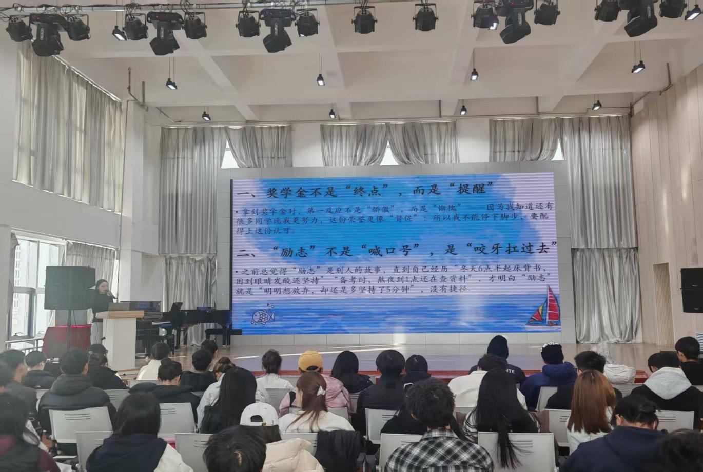 国家励志奖学金获得者--22级音乐学A班李文婷、24级航艺B班杨若瑄同学,则聚焦奖学金获得经历、资金使用规划与未来发展方向,分享了在大学期间的成长蜕变。她们鼓励新生们立足专业特色,明确学习目标、端正治学态度,在勤学苦练中夯实专业基础,在实践探索中提升综合能力,以脚踏实地的努力奔赴理想彼岸,展现了新时代青年学子自强不息、奋发向上的精神风貌。