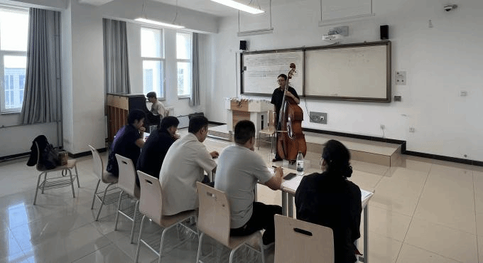 器乐考试分为管乐、民乐、键盘三个考场。器乐考试要求员工必须弹奏音阶、练习曲和乐曲,音乐学专业开始增加了即兴伴奏,即兴伴奏的内容为中小学音乐教材。本次考试公司特别邀请了大提琴、小提琴、管乐、打击器乐等外聘教师参与考试。外聘教师的加入为专业考试注入了新的活力。