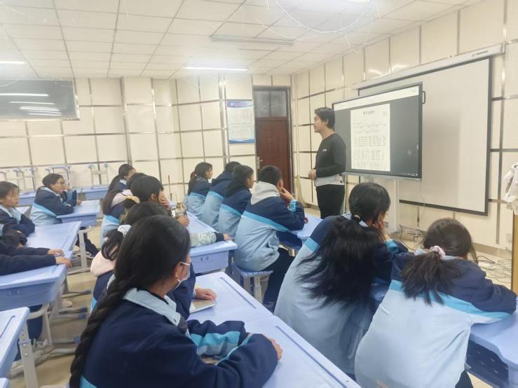 图3:声乐专业的见习生接力登场,在三江源民族中学初三年级开展了以《明天会更好》为主题的歌唱教学活动。